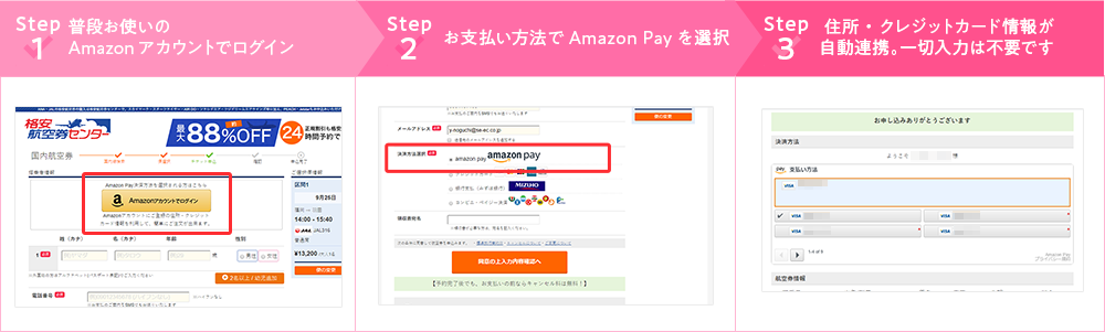 アマゾンにご登録の住所やクレジットカード情報をそのまま使ってお買い物ができます。