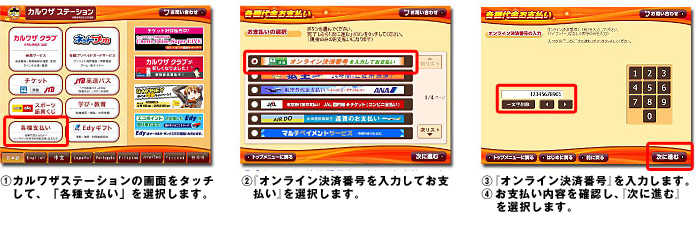 カルワザステーション端末からプリントされた受付票を持って30分以内にレジにて代金をお支払い下さい。