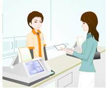 店舗で店員にプリントアウトした用紙、又は届いたメール画面、もしくはお伝えしたオンライン決済番号をみせて下さい。